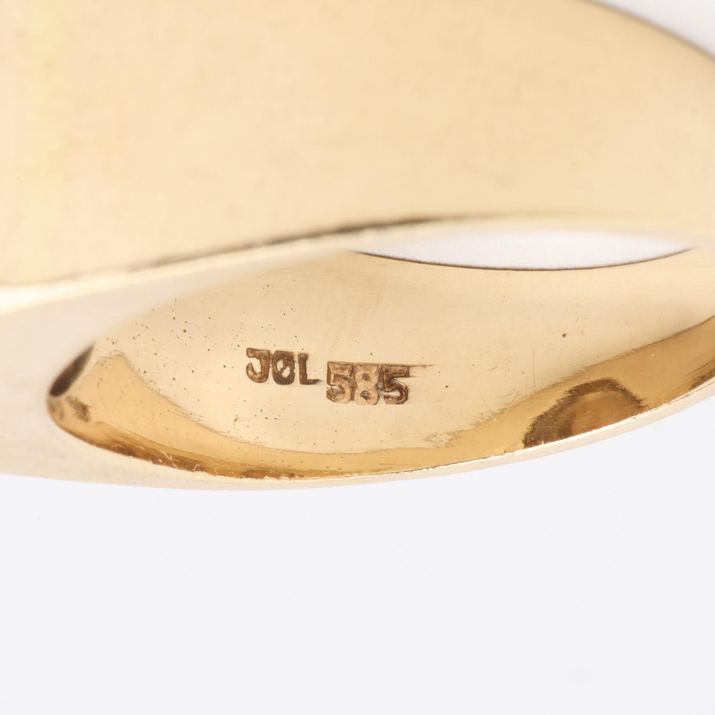 Characteristics: Ring in 14 carat Gold, that has a total weight of 10.69 g.