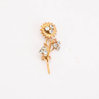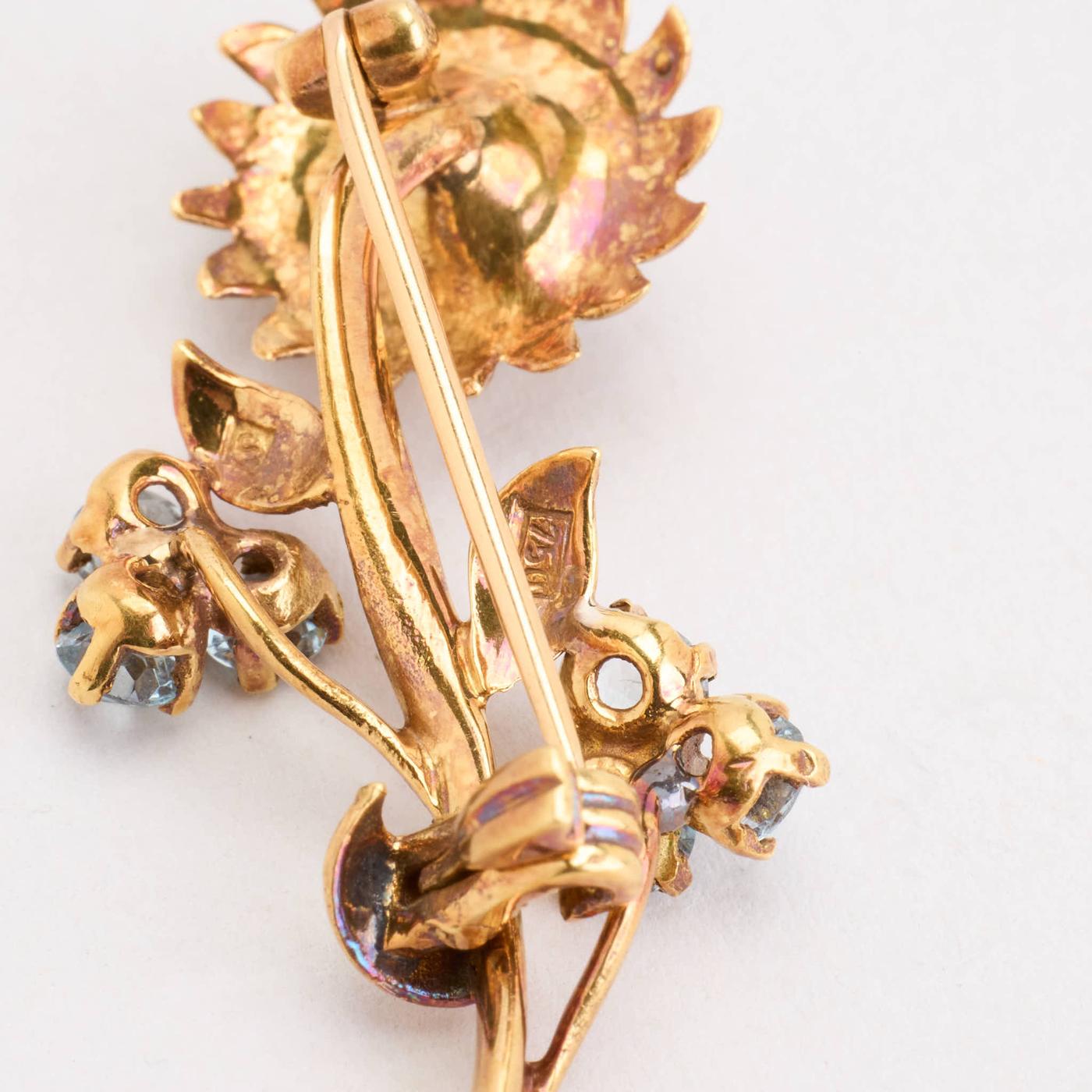 BROOCH IN 18K GOLD, WITH AQUAMARINES, LENGTH 4.3 CM