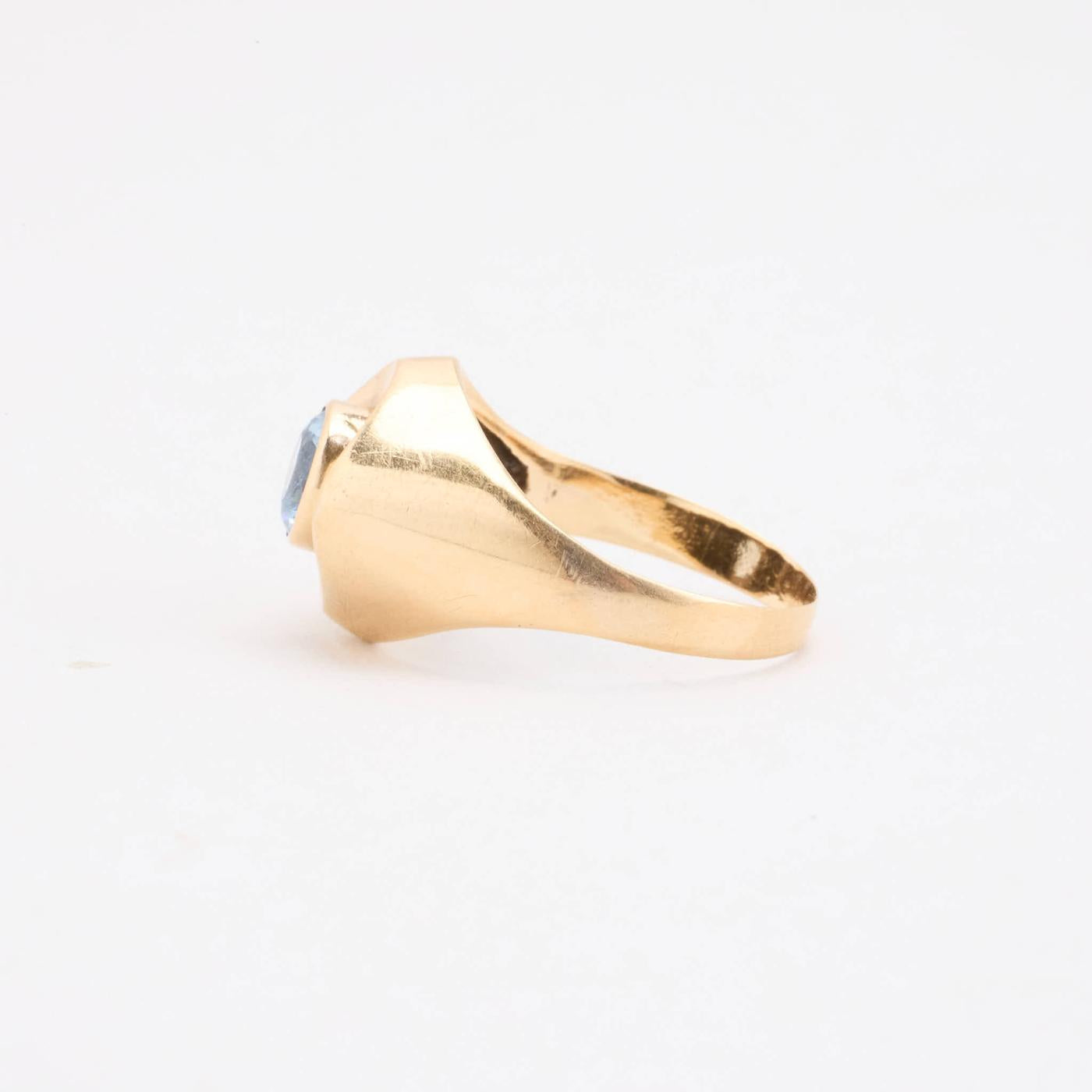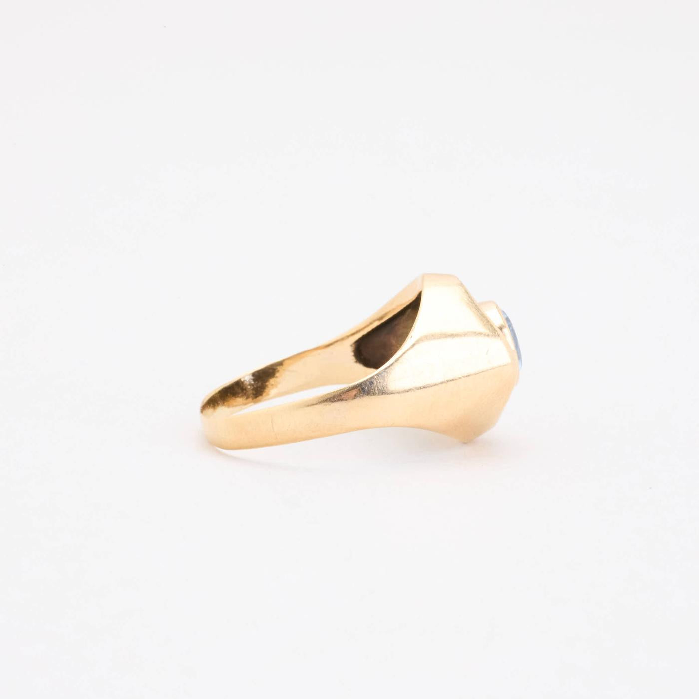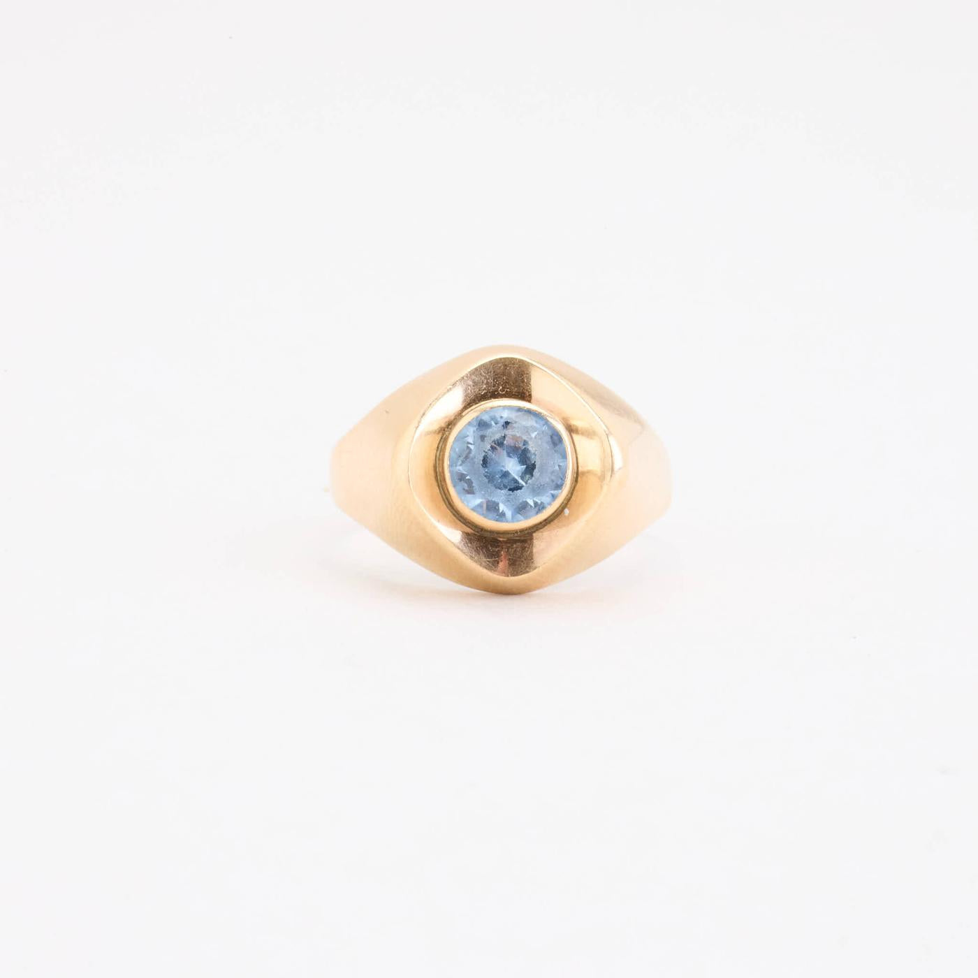 SIGNATURE RING IN 14K GOLD, WITH BLUE GEMSTONE, SIZE. 55