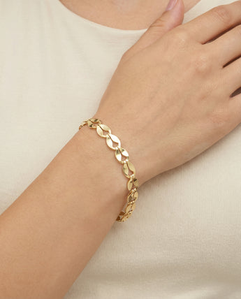 Každý vintage kousek je odborně vyleštěn našimi zlatníky, čímž se zvyšuje jeho přirozený lesk při zachování nadčasového kouzla, aby dorazil zářivý, uhlazený a připravený k opětovnému ocenění.