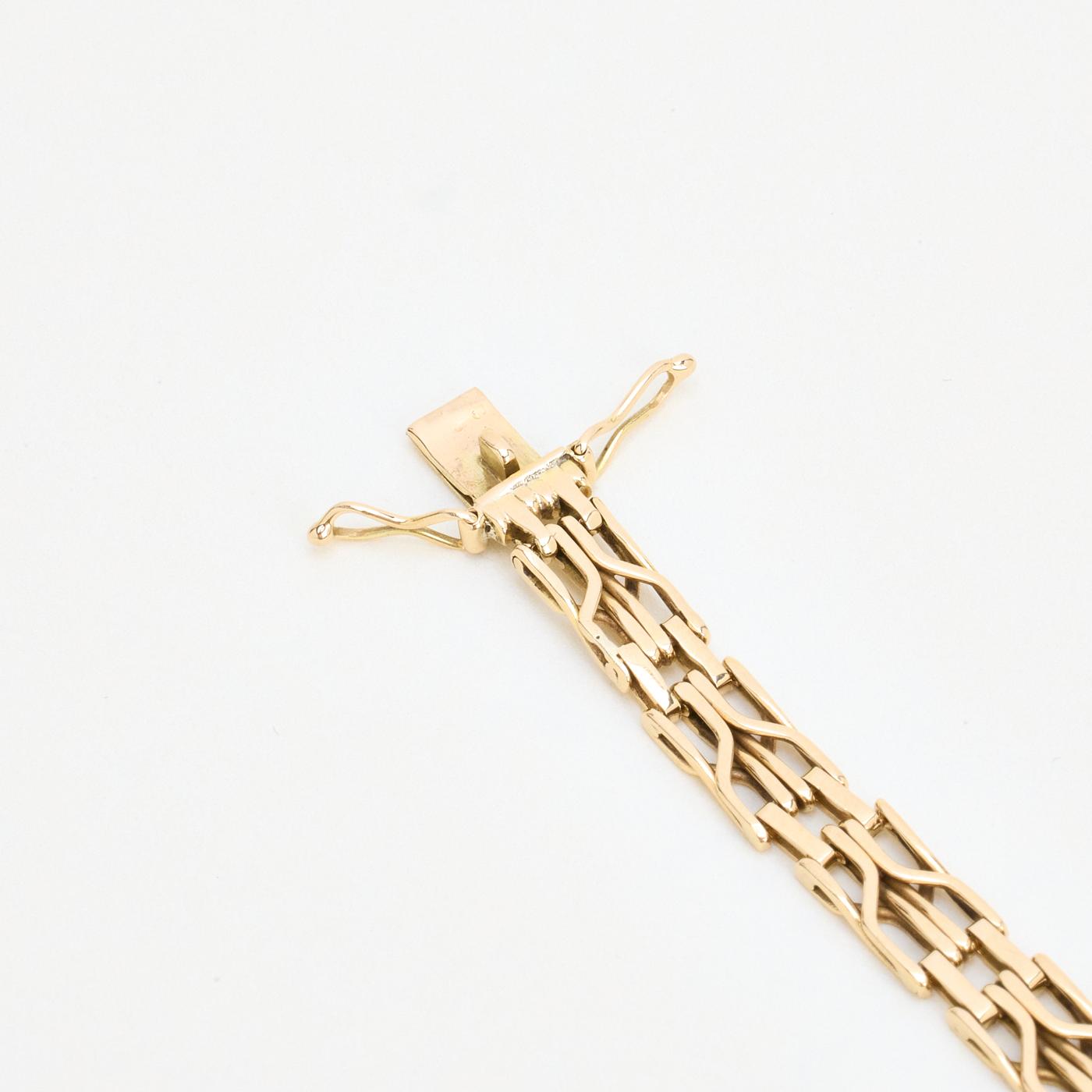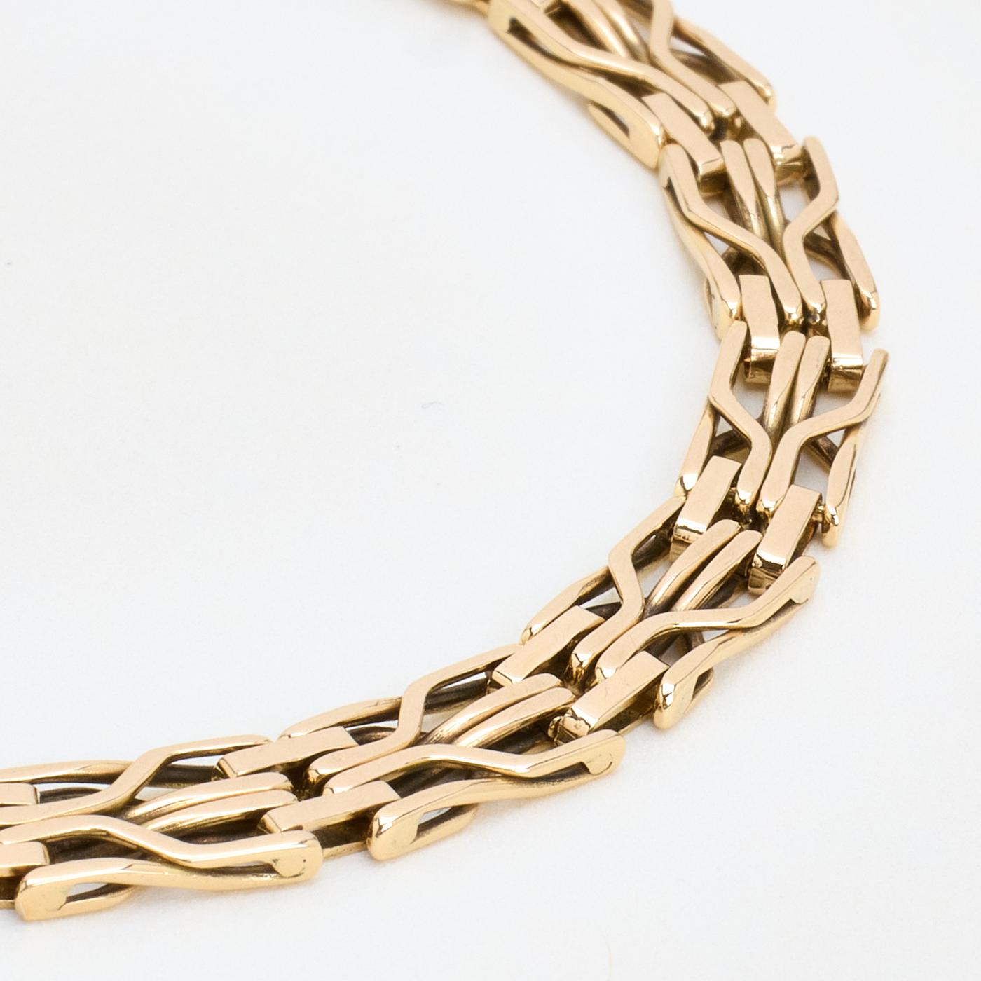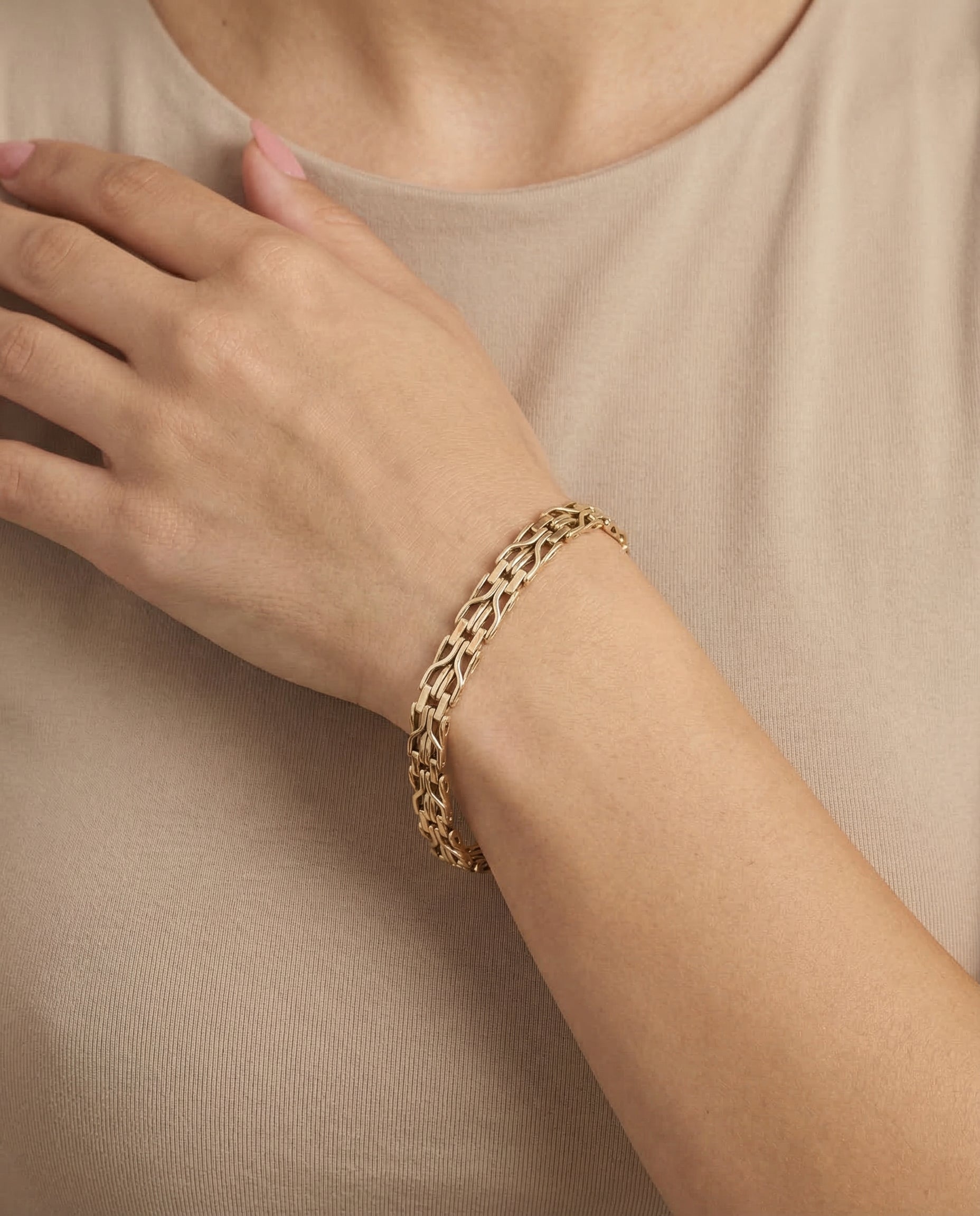 Každý vintage kousek je odborně vyleštěn našimi zlatníky, čímž se zvyšuje jeho přirozený lesk při zachování nadčasového kouzla, aby dorazil zářivý, uhlazený a připravený k opětovnému ocenění.