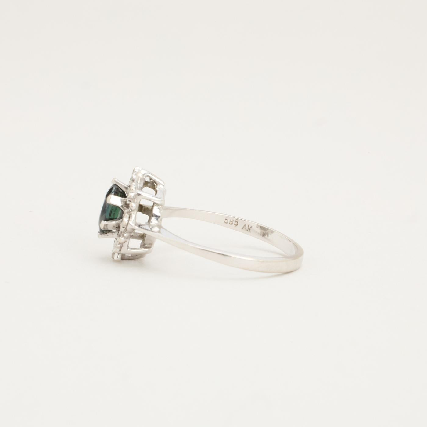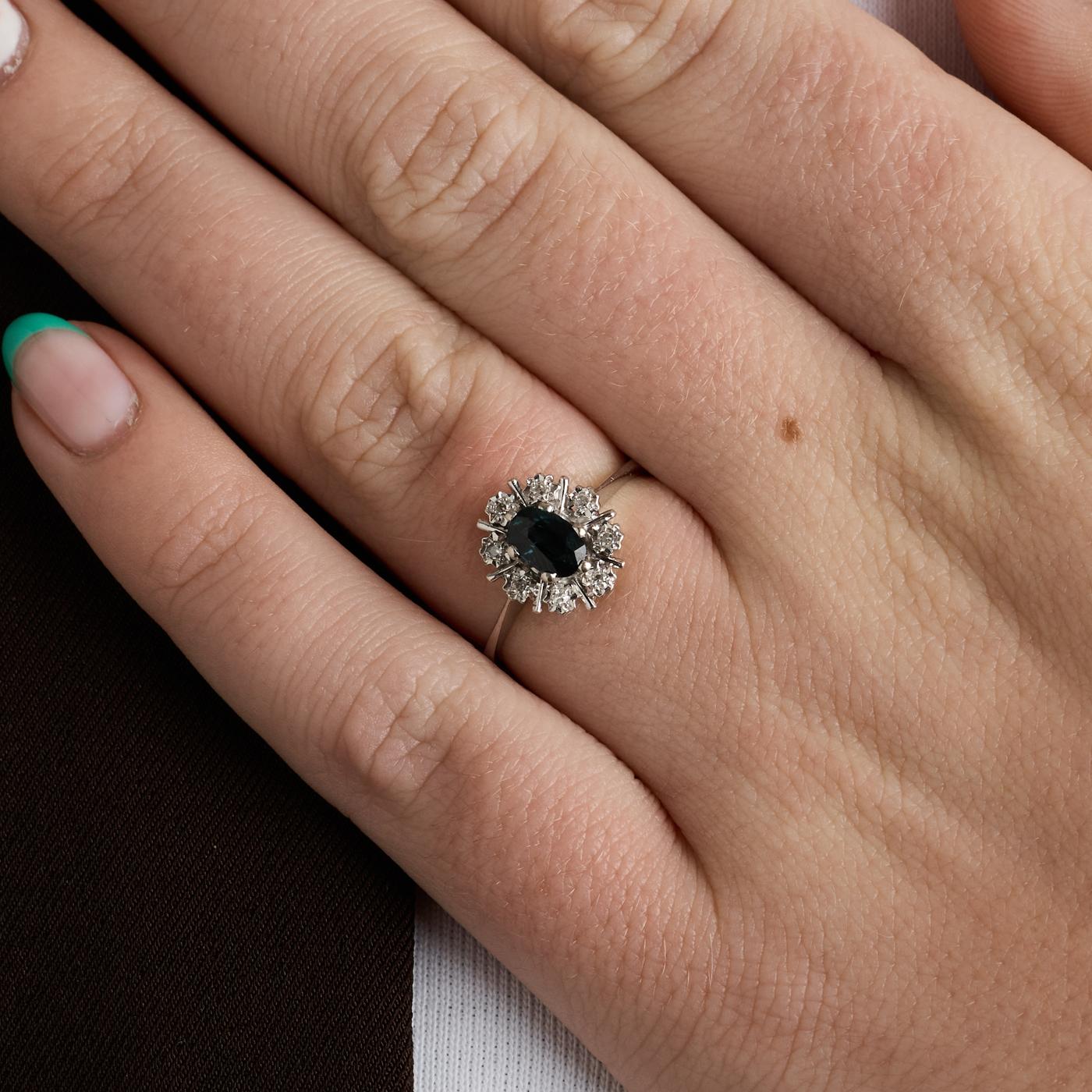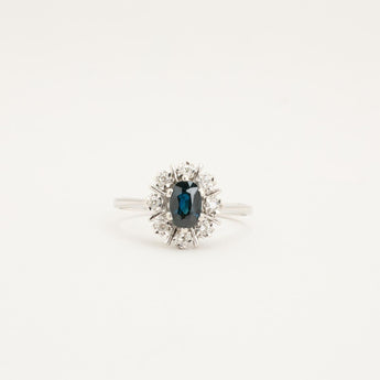 ROSETTENRING MIT DIAMANT (0.04 CT) 14 KARAT MIT SAPHIR GRÖSSE 16.6 / GRÖSSE 52