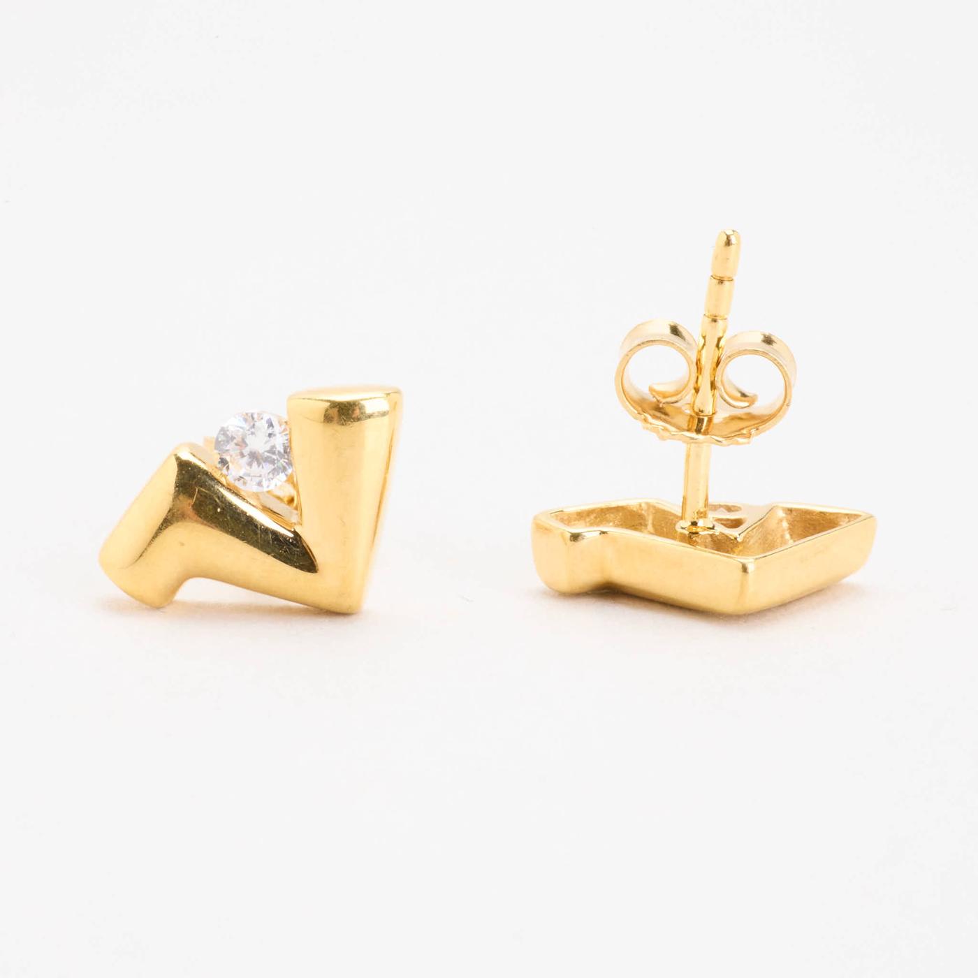 BOUCLES D’OREILLES EN 8K OR AVEC ZIRCON, 1 CM,