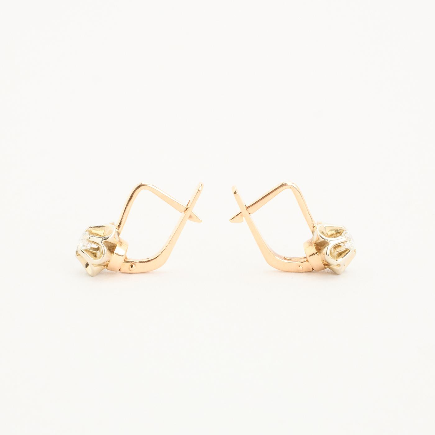 BOUCLES D’OREILLES AVEC DIAMANT (0.38 CT) EN 14K OR ET OR BLANC, 1.6 CM,