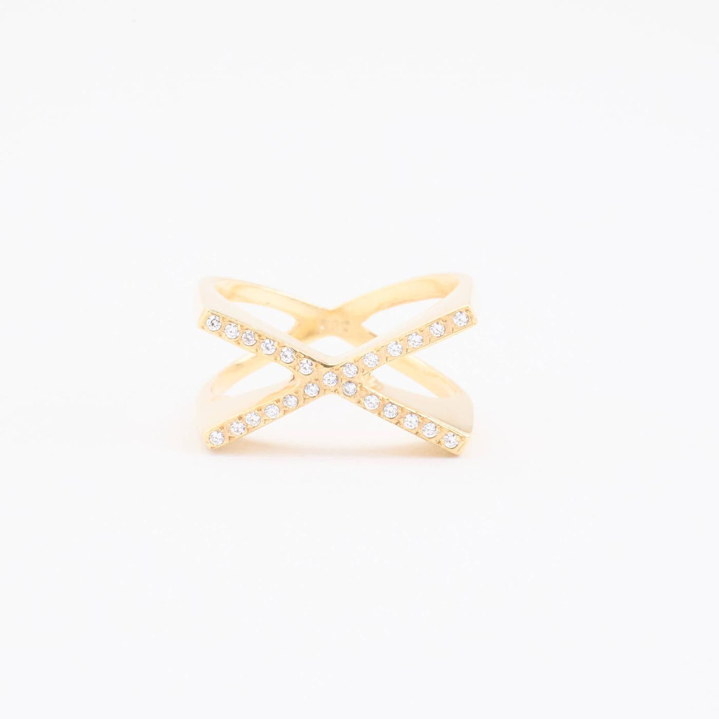 ANNEAU CROISÉ EN 14 CARATS AVEC ZIRCON TAILLE 55 - 56