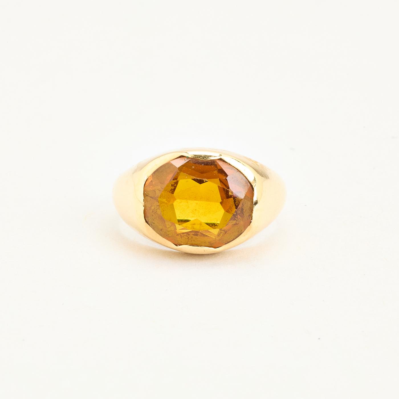 ANEL DE ASSINATURA DE 14K OURO COM SAFIRA SINTÉTICA, TAMANHO 52